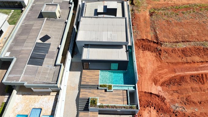 Casa moderna com características diferenciada uma fachada linear e clean, ideal para aquela família que busca um local seguro com uma vista linda e qualidade de vida.